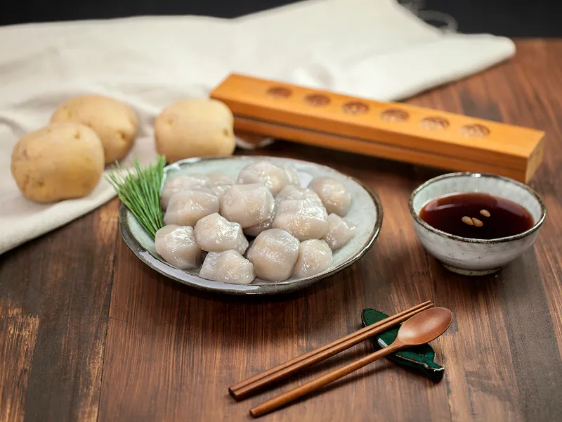 좋은 재료를 사용해야 맛도 두 배가 됩니다. 강원도 평창 감자와 국산 감자 전분을 사용합니다. 감자 중에서도 최고라 여겨지는 강원도 감자로 만듭니다. 포슬포슬 품질 좋은 감자만 사용하기 때문에 그 맛과 식감이 일품!