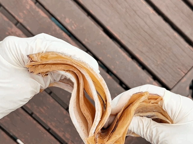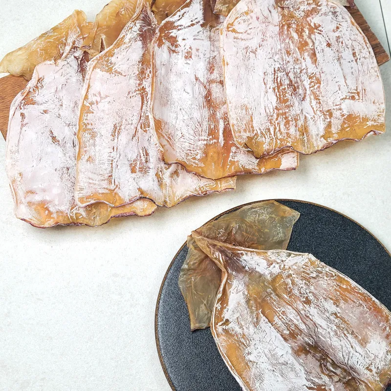 고소함이 강하고 풍미가 깊은 진한 맛을 자랑해요. 부드럽고 쫄깃하며 적당히 말랑말랑하답니다. 맛과 식감을 모두 잡은 귀한 마른오징어예요.