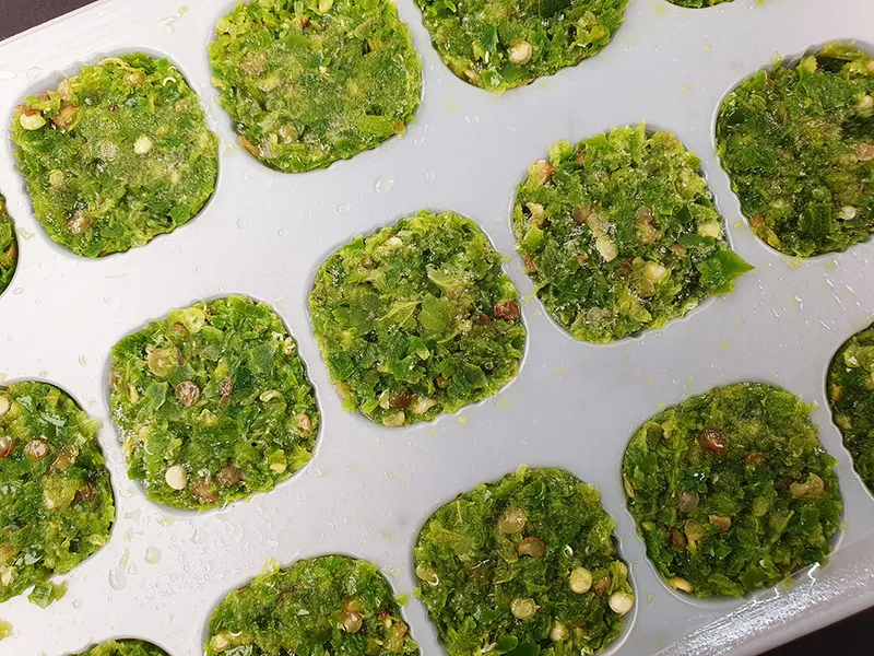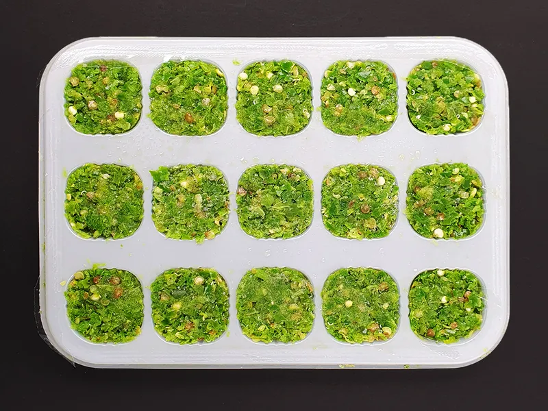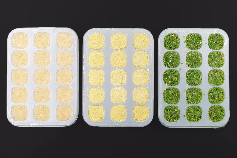 큐빅형으로 조금씩 소분되어 있는 다진 채소, 그중에서 가장 활용도 높은 마늘, 생강 그리고 청양고추를 준비했어요. 국이나 찌개 등 다양한 요리에 간편하게 활용하실 수 있어요.
