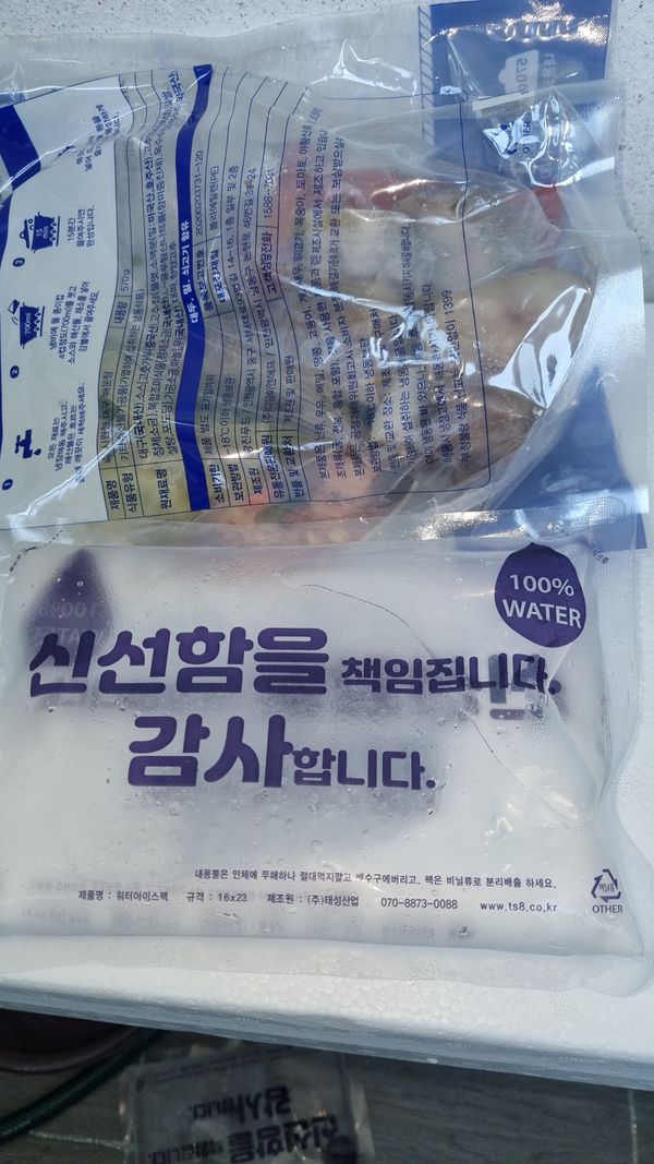 보내준 물건이 냉동상태로 오지 않고 냉동상태가 거의 다 녹았어요 얼음도 다 녹아 물이 되었습니다 얼음도 하나는 새어서 녹은 물이 모두 밖으로 흘러 나왔습니다 그래서 주문한 2팩을 동시에 요리하는 수 밖에 없었습니다 다음엔 냉동상태로 보내주면 나눠서 냉동보관하면서 먹을수 있으면 좋겠습니다 맛은 있었어요