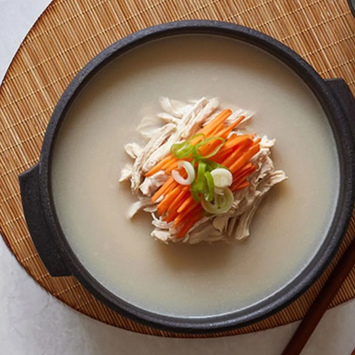 닭곰탕에 사용하는 닭은 신선함을 위해 하루 두 번 받아서 사용해요. 맛있는 음식의 기본은 신선함! 당일 준비한 재료는 당일 사용한다는 원칙 아래에서 제조합니다. 닭을 삶지 않고 찜기에 찌는 방식으로 조리해 퍽퍽하지 않고 부드럽게 익어 국물과의 조화가 일품이에요.
