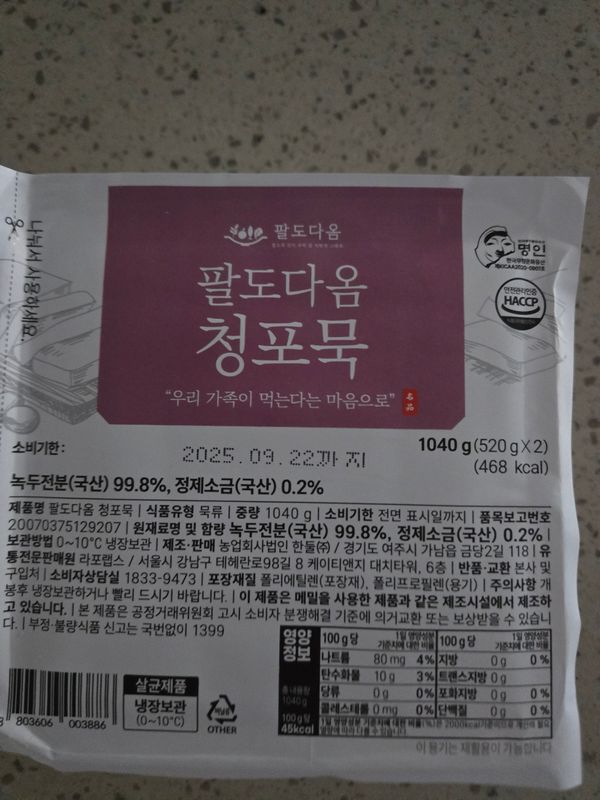 도토리묵은 자주 먹지만 청포묵은 고깃집 식당에서만 먹었는데 마치 팔도감에 있어서 후기도좋고해서 구매했어요 감사합니다 새해 복 많이 받으세요