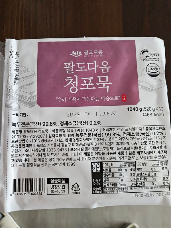 도토리묵은 자주 먹지만 청포묵은 고깃집 식당에서만 먹었는데 마치 팔도감에 있어서 후기도좋고해서 구매했어요 감사합니다 새해 복 많이 받으세요