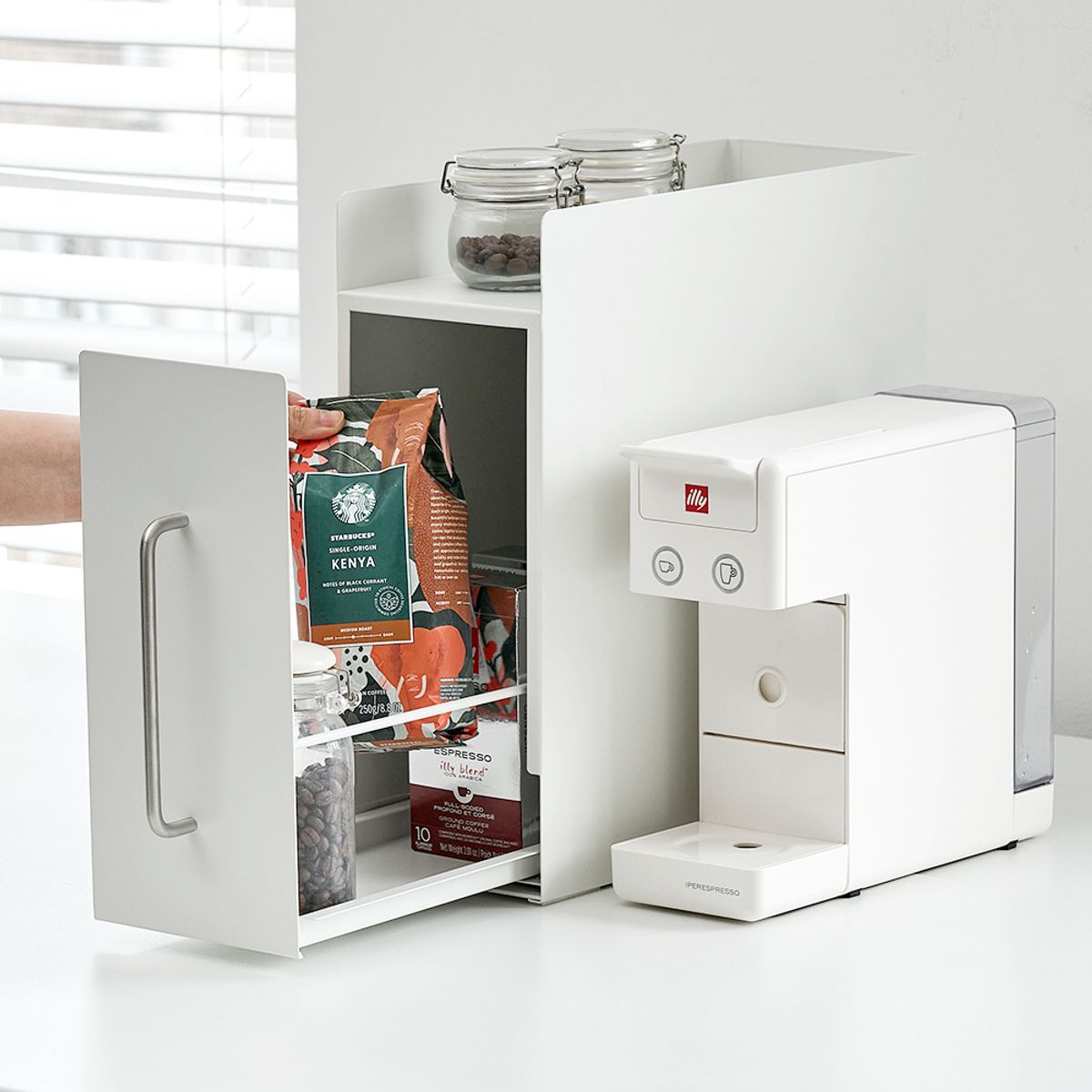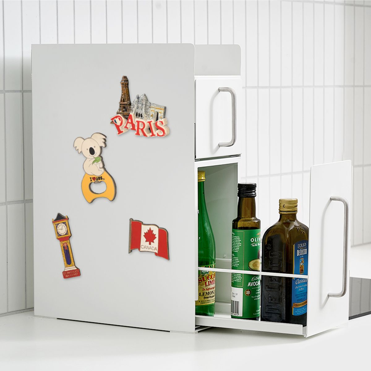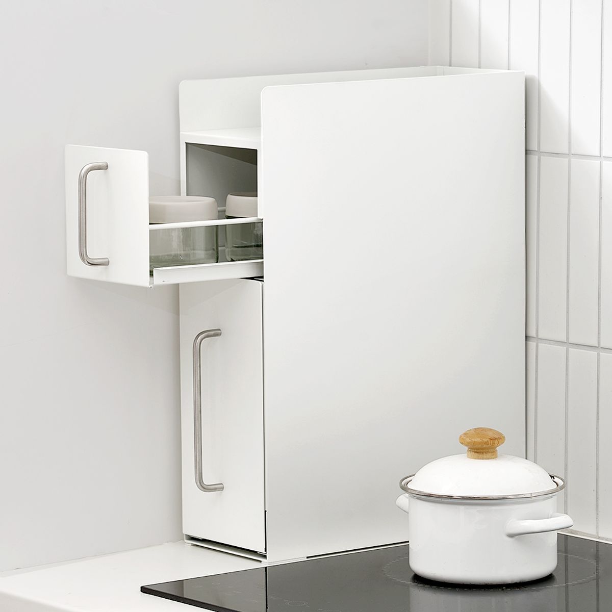 무디타 비화이트 슬림 세로형 철제 슬라이딩 수납장 1단 / 홈카페 영양제 양념통 틈새 정리함