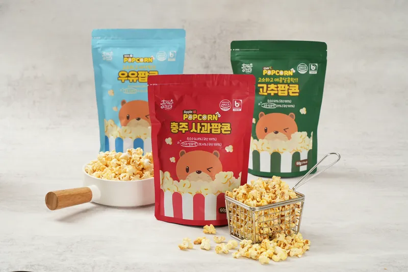 100% 국산 팝콘 옥수수와 국산 농산물 발효액, 천일염을 사용하여 더욱 믿을 수 있고 온가족이 함께 즐길 수 있습니다.