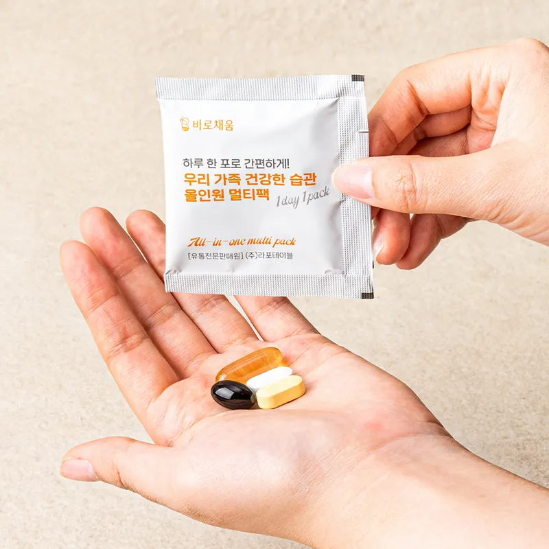 매번 외출할 때마다 영양제 통에 나눠 담아 들고 다니지 않으셨나요? 딱 한 번에 먹을 양만큼 개별 포장하여 외출하거나 여행 갈 때 챙겨 가시기 좋습니다.