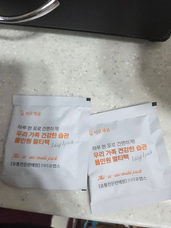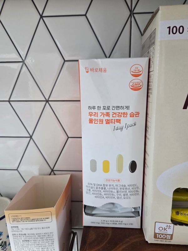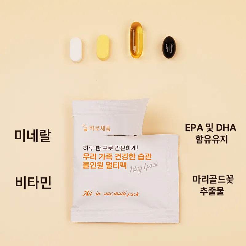 '우리 가족 건강한 습관 올인원 멀티팩'은 건강기능식품인 점 참고 부탁드립니다.