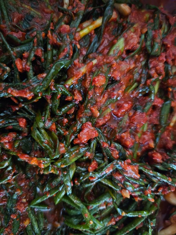 파김치 젓갈도적당하고 양념도 알싸하니 그냥먹어도 좀익혀 먹으도 맛날것같아요 굿입니다~^^♡