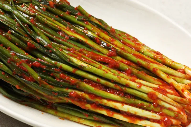 실파를 하나하나 다듬어 전라도식 양념으로 버무린 파김치입니다. 파김치만의 알싸한 맛이 입맛을 싹~ 돋우어 줍니다. 익을수록 파 특유의 단맛이 우러나와 더 맛있습니다!