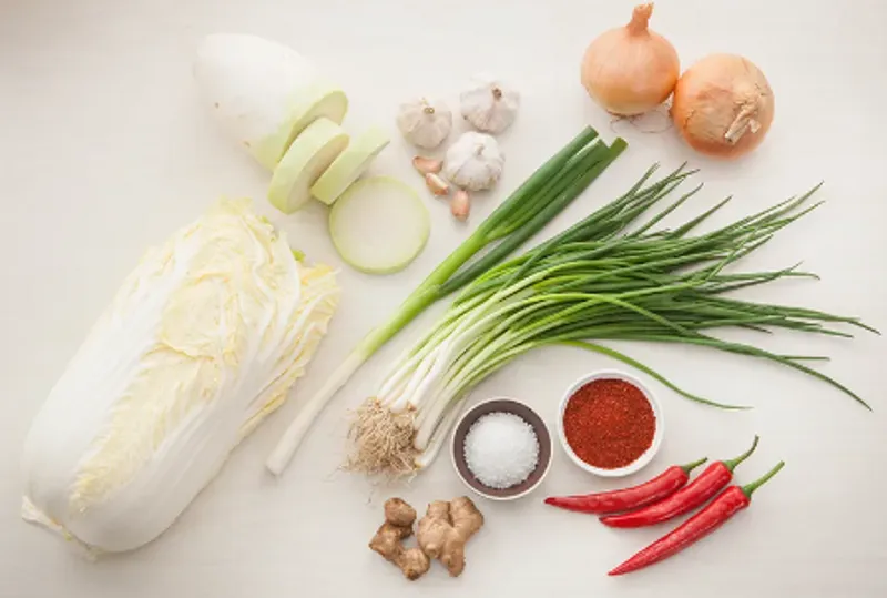 겨울에 재배되는 파는 추위를 견디기 위해 파 조직이 치밀하고 매운맛이 강한 편입니다. 파의 흰 줄기 부분이 초록색 줄기보다 훨씬 맵습니다. 흰 줄기 부분이 양념에 닿게끔 용기 아래쪽으로 담아 김치를 잘 밀봉하여 상온에서 2~3일정도 익히시면 매운맛이 줄어들고 맛도 잘 스며듭니다.
