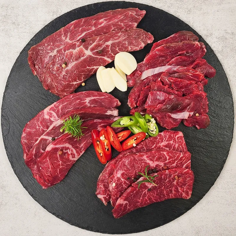 농가에서 정성스레 키운 육우를 손질해 등심 포함, 다양한 부위로 소 한 마리 세트(1kg) 준비했습니다. 2등급 이상의 좋은 품질 소고기로 한우보다 성장이 빠르고 사육 기간이 짧아 육질이 연하고 지방이 적어 느끼하지 않고 담백한 맛을 자랑합니다.