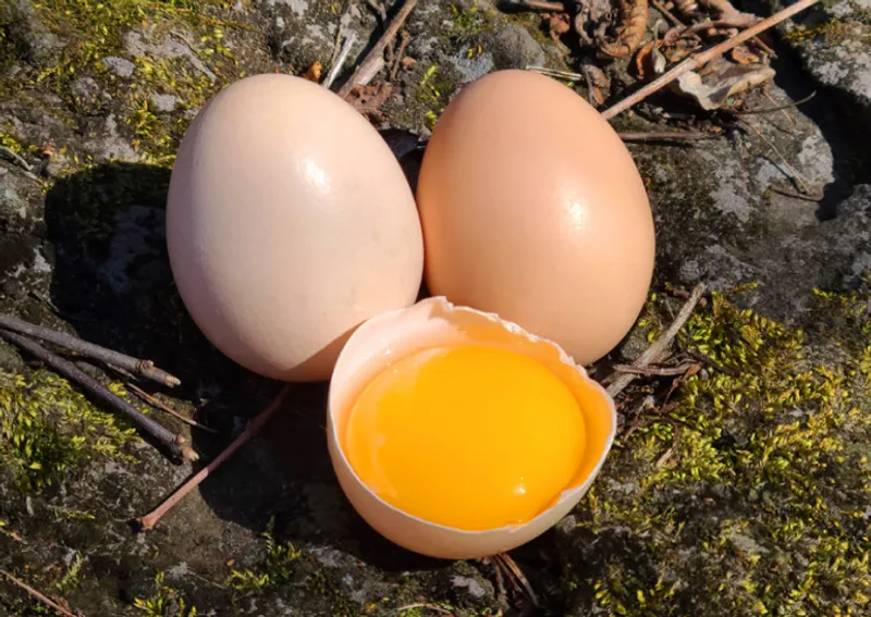 구엄닭은 다른 닭에 비해 크기가 작아 계란 크기도 작은 편이지만 고소한 맛이 다른 계란과는 비교할 수 없을 정도로 뛰어납니다! 일반 계란과 달리 아이보리 색을 띠고 있습니다.