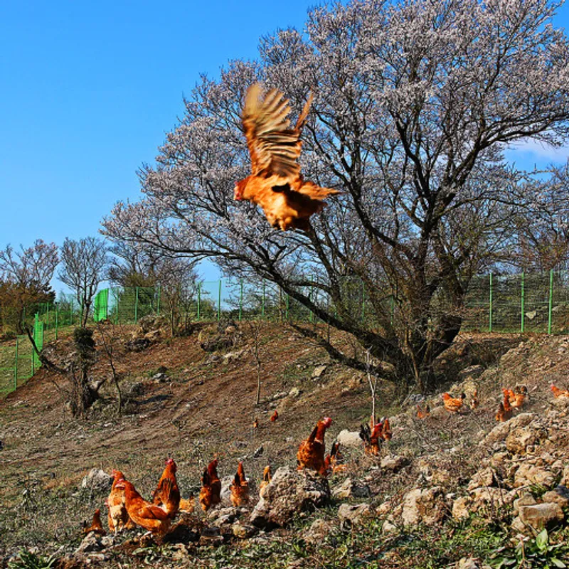 구엄닭은 국내 재래종이지만 일제시대를 거치며 체구가 작고 산란율이 떨어진다는 이유로 도외시 되었습니다. 외래종이 들어오며 재래종이 거의 사라진 상황입니다. 제주 재래닭인 구엄닭은 야생성이 살아 있어 질병에 특히 강하고 '하늘을 나는 닭'으로도 유명합니다.