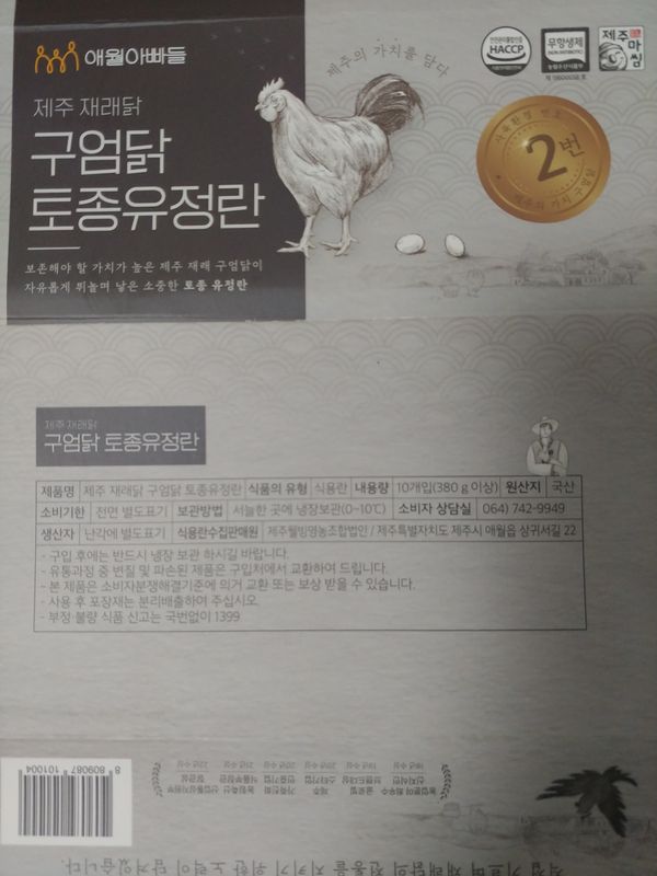 옵션: 난각 2번 구엄닭 유정란 40구(10구*4팩)