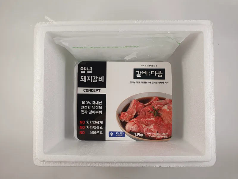 신랑이 양념갈비를 너무 좋아해서 일주일에 4회이상은 먹기에 팔도감에서 여러군데 다 시켜보았는데 처음으로광고 사진과 똑같은 모양이 고기가 배송되었습니다. 정성스런 칼집과 고기 상태도 매우 싱싱하고 포장도 이중으로 아주 깔끔하게 되어있으며 맛은 진짜 양념갈비를 제대로 먹은 느낌이었습니다. 무엇보다 고기 상태가 너무 예쁘고 좋아요. 다른곳에서는 칼집도 제대로 들어가 있지 않고 고기 손질이 제대로 되어있지 않은 곳이 많아요. 다음에 재구매 의사 100% 있습니다. 참고로 지역은 제주도인데 문제없이 도착했습니다.