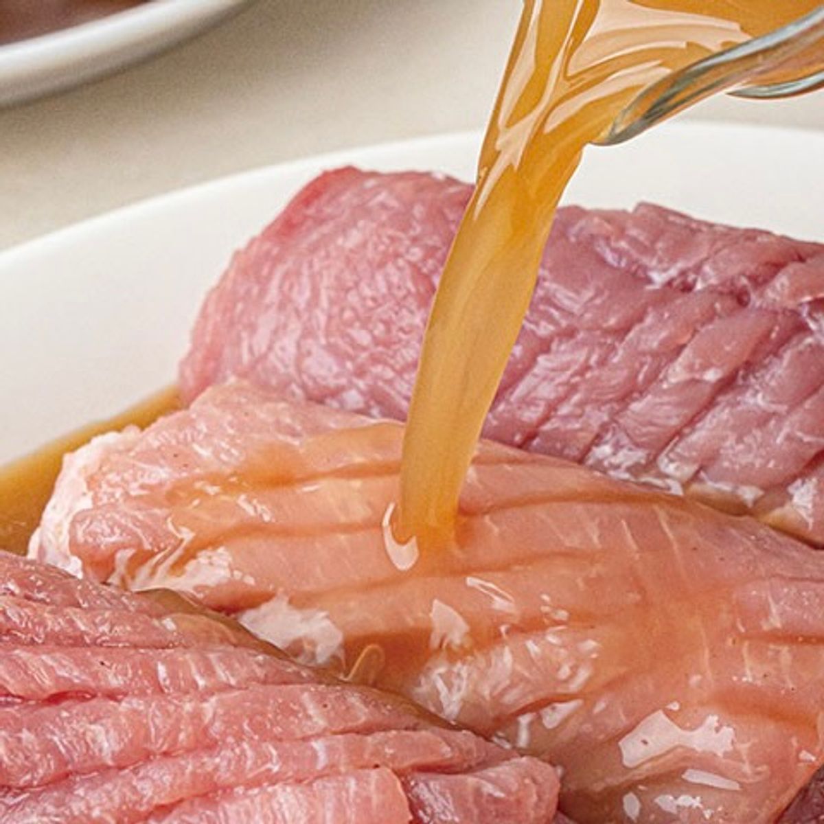 좋은 고기에 걸맞게 양념까지 신경 썼어요. 신선함을 위해 주문과 동시에 돼지갈비를 만들지만, 다년간의 노하우로 장시간 숙성하지 않아도 양념이 잘 베여있어요. 카라멜 색소 없이 과일과 채소로 정성 들여 만들었답니다.