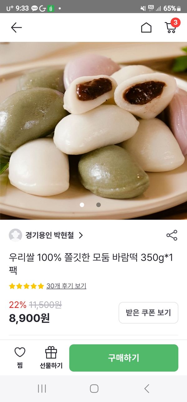 옵션: 모둠 바람떡 350g*1팩