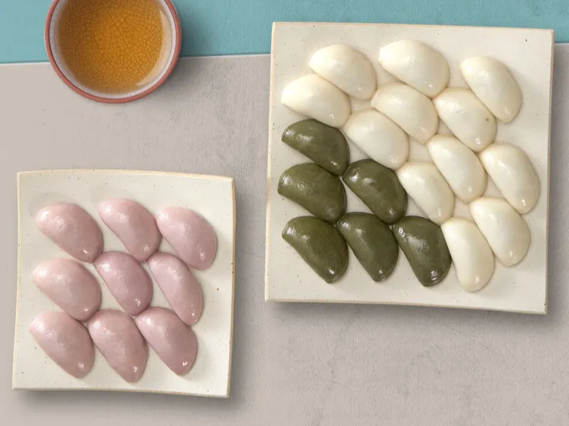 반달 모양으로 볼록하게, 바람을 같이 넣어 빚은 바람떡입니다. 100% 우리쌀로 빚고, 백미, 쑥, 자색고구마 등 천연재료로 예쁘게 색을 내 맛도 좋고 보기도 좋은 별미랍니다. 말캉 말캉한 떡속에 달달한 통팥이 가득 들어가 아주 매력적이죠.