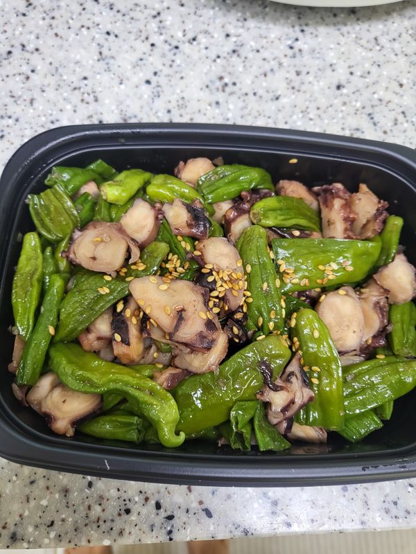 문어가 야들야들 맛있고 꽈리고추의 약간 매운맛하고 잘 어울립니다.잘 먹었어요