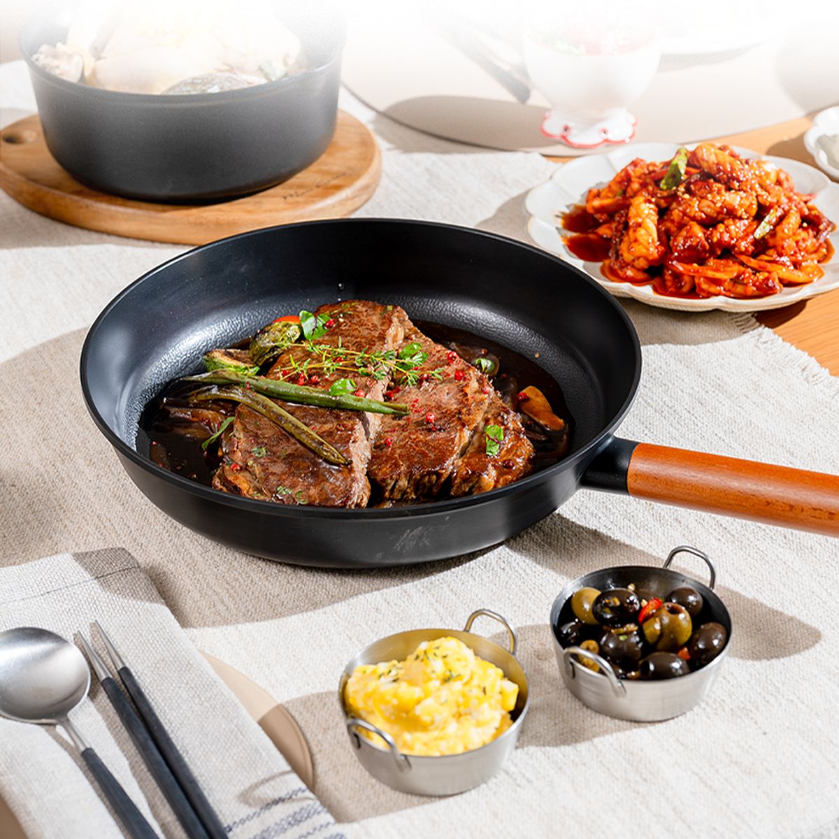 느와르 블랙 IH 인덕션 겸용 우드핸들 국내생산 프라이팬 24cm