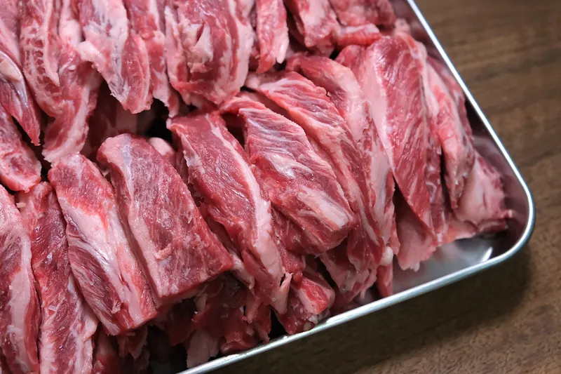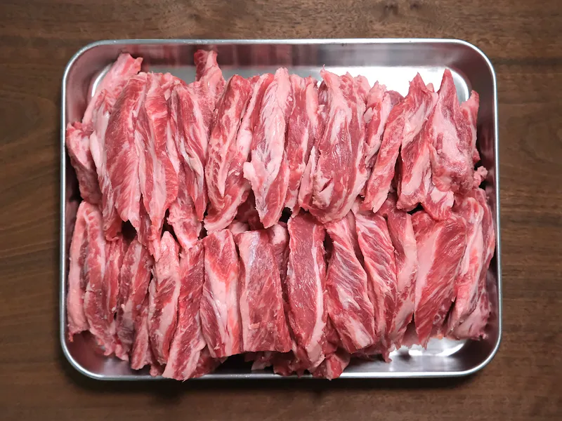 풍부한 육즙과 부드러운 결이 살아 있는 고급 부위 소갈빗살을 사용합니다. 질기지 않아 남녀노소 먹기 좋아요.