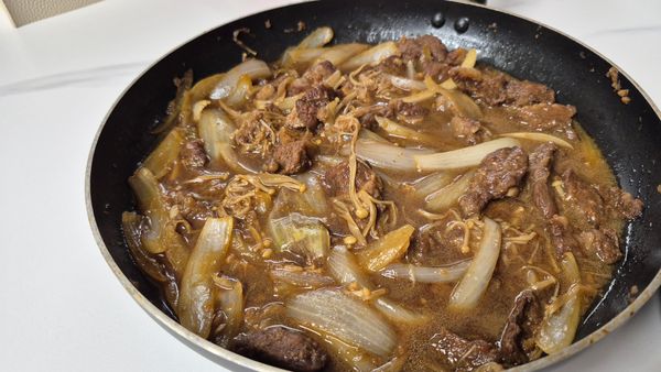 예열된 프라이팬에 고기와 양념을 모두 붓고 중불에서 어느 정도 익어가면 약불로 양념을 졸여주세요.