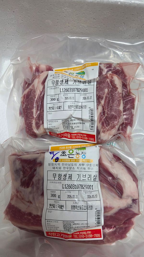 옵션: (구이용) 무항생제 한돈 가브리살 300g X 2팩 (총 600g)