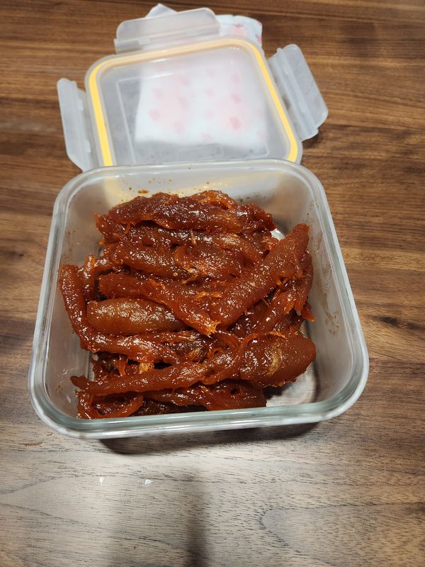 장아찌라선지 정말많이 짜네요. 가늘게 찢어서 조금씩 먹어야될듯요.