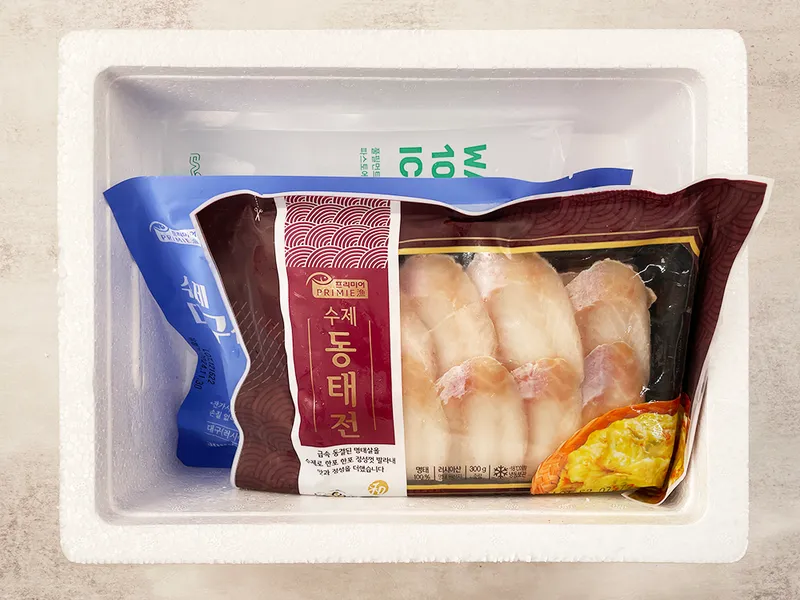 신선하게 급속 동결된 대구살과 명태살을 수제로 한포씩 발라내 맛과 정성을 더했습니다. 생선의 잔가시 역시 직접 정성껏 손질해 전통의 맛을 해치지 않은 수제전입니다.