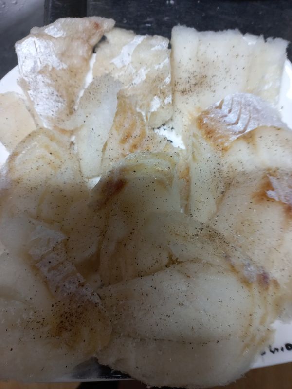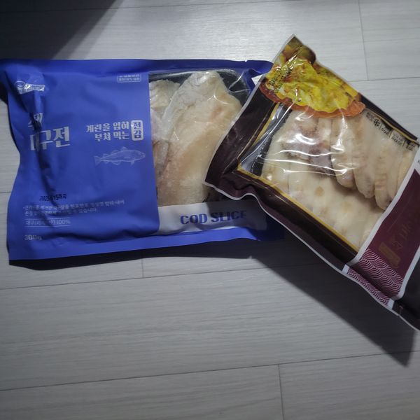 수제로 작업하다 보니 간혹 잔가시가 나올 수 있습니다.해동시 나오는 물은 수분이 빠져 살결이 푸석푸석해지는 것을 방지하기 위해 글레이징 코팅처리한 물이 빠지는 것으로 품질에는 문제가 없습니다.