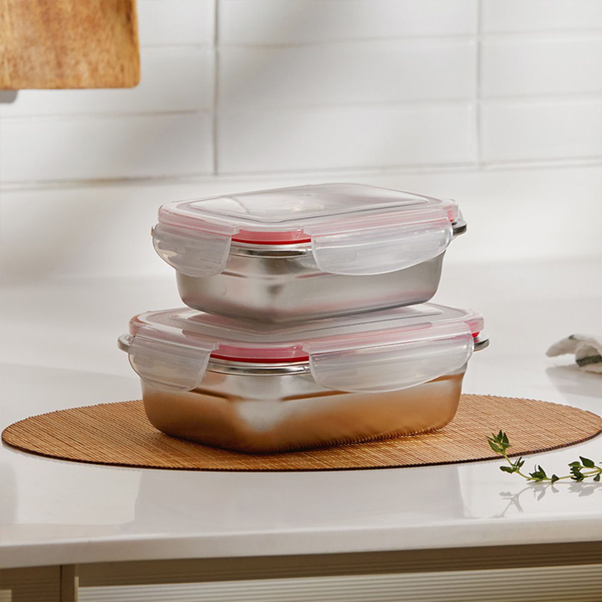 옵션: 키친플래그 스테인레스304 밀폐 찬통 4종 8P세트
