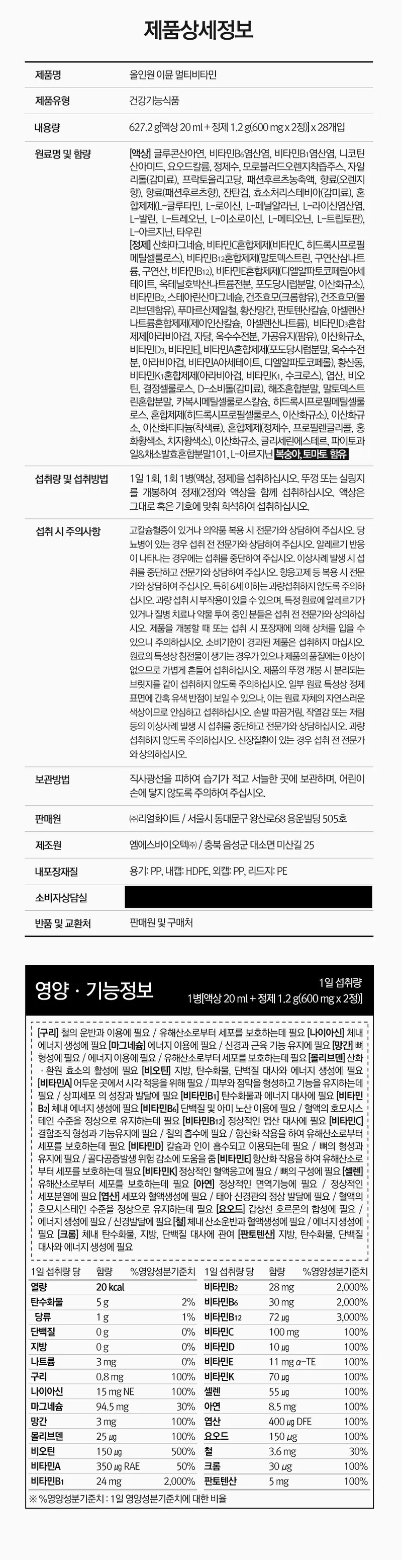 한 병으로 활력 충전 올인원 비타민(1병 20ml*28개입)