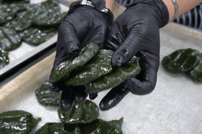 갓 찐 쑥개떡에 고소한 콩기름을 바른 후 포장하였어요. 말랑말랑 윤기 나는 쑥떡을 간식이나 간편한 한 끼 식사로 즐기세요!