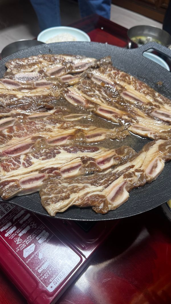 오랫만에 LA갈비 맛나게 잘 먹었어요 다른때는 양파와 감자 팽이버섯 넣어 찜으로 즐겼는데 이번에는 프라이팬에 직접 구웠어요 마무리로 칼칼한 라면은 국룰이죠~