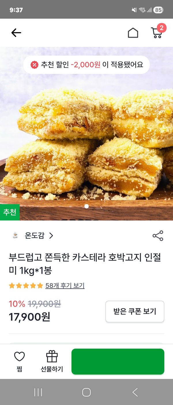 배송이 조금 느렸지만 떡이 정말 맛있네요! 호박고지 여러 군데서 주문해 먹어봤는데 여기가 탑입니다. 떡 크기도 크고 카스테라 가루 듬뿍, 호박 듬뿍입니다. 요즘 떡에 꽂혀서 지금도 냉장고에 7가지 떡이 있는데 다 먹고나면 이 떡만 주문해 먹을 생각입니다.