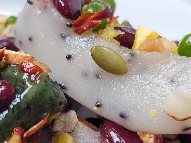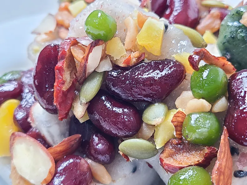 엄선된 찹쌀로 만들어 쫄깃하고 쫀득한 식감이 일품이에요. 밤, 대추, 호두 등 영양 가득한 견과류를 듬뿍 넣어 고소한 맛이 가득해요! 씹을수록 입안 가득 퍼지는 달콤한 맛이 기분 좋은 행복감을 선사해요.