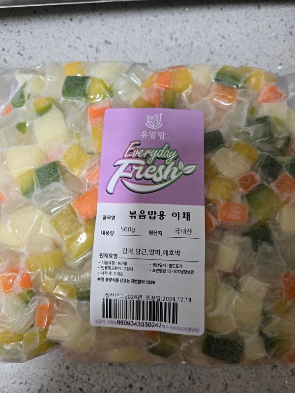 애들 볶음밥 햐 주려고 구매 했어요 야채가 곰고루 되어 있어 음식 하기 편했네요