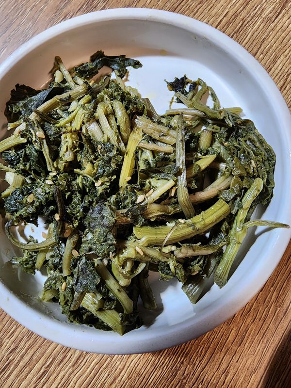 집들이 나물로 재구매햇다 이번에는 쫌 싱거윗다 들기름과 소금을 넣어 다시 무쳣다 꾸준하게 시켜 먹을 작정이다