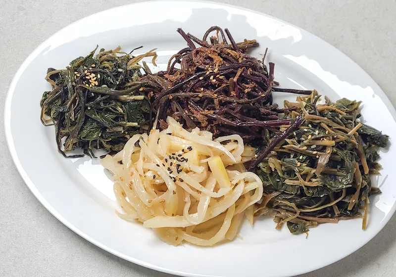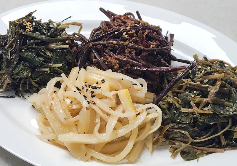 고사리부터 도라지까지, 씹을수록 고소하고 아삭한 식감이 매력적인 나물반찬이에요. 짭조름하면서도 부담스럽지 않은 맛으로 밥과 찰떡궁합을 이룹니다.