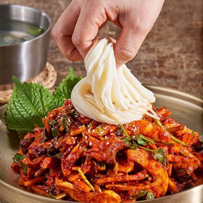 환상의 조합 새콤달콤 쫄면과 납작만두 3인분
