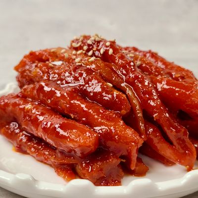 신선한 더덕과 감칠맛 좋은 양념이 가득한 더덕무침 500g