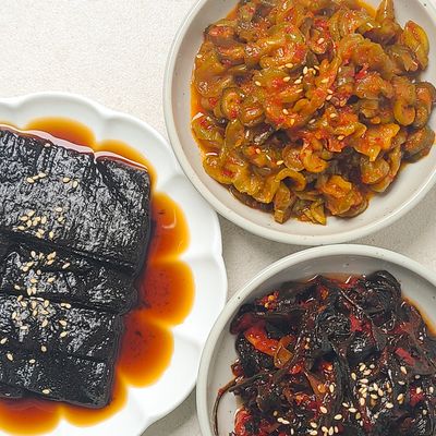 무엇을 고르든 맛있는 반찬 3종(열무단배추짜박이/고추장아찌무침/마늘장아찌/생 깻잎김치/코다리강정/삭힌단풍콩잎김치)