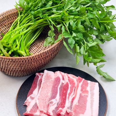 무농약 청도 한재 미나리 + 국산 한돈 삼겹살 세트(미나리 500g+삼겹살 500g)