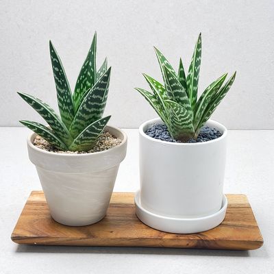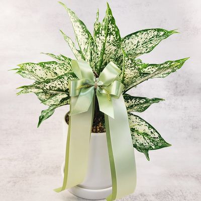 공간에 생기를 불어넣어 주는 칼라무늬 홍콩야자 (흰색 화분/크림 토분) (지름 11cm)